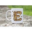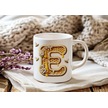 E Harfi Bal Arısı Tasarım Kupa Bardak - Bal Ve Petek Desenli Kişiye Özel Kahve Kupası - Hediyelik Beyaz