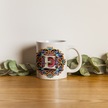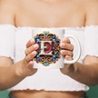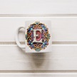 E Harfi Boho Bardak, Renkli Özel Tasarım Hediyelik Harfli Kupa, 330ml Porselen Beyaz