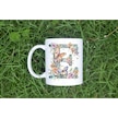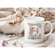E Harfi Çiçekli Kupa Bardak - Soft Renk Çiçek Ve Kelebek Desenli Zarif Kahve Kupası - Bohem Beyaz