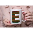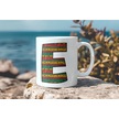 E Harfi Etnik Desenli Kupa - Afrika Tarzı Kahve Çay Kupası - Hediyelik - Black History Beyaz