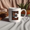 E Harfi Kaplan Figürlü Nakış Desenli Kupa Bardak - Kişiye Özel Vahşi Hayvan Desenli Kupa - Hediye Beyaz