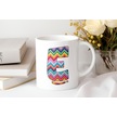 E Harfi Renkli Zigzag Desenli Kupa Bardak - Afrika Tarz Etnik Tasarım Kupa - Kişiye Özel Beyaz