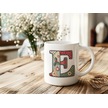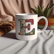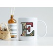 E Harfi Yılbaşı Temalı Kupa Bardak - Yeni Yıl Konsept Yamalı Efekt Tasarım - Noel Hediye Beyaz