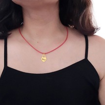 E Harfine Özel 14 Ayar Altın Plakalı Kırmızı Bağlıklı Kalp Figürlü Hediyelik Kolye-633harf E