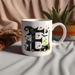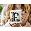 E Harfli Halloween Kedili Figür Kupa Bardak - Şapkalı Ve Kazanlı İsme Özel Kupa - Hediye 07 Beyaz