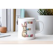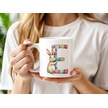 E Harfli Tavşan Kupa - Patchwork / Yamalı Desenli İsme Özel Kupa - Pastel Vintage Tarz Hediyelik Beyaz