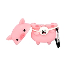 E2M Airpods 1-2 Uyumlu Kılıf Pembe Burunlu Domuzcuk