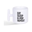 Eat Sleep K-pop Repeat Baskılı Latte Fincanı T Kulplu Kupa Bardak Beyaz