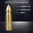 Ebitda Paslanmaz Çelik 500ml Vakumlu Su Şişesi - Seyahat İçin Mermi Şeklinde Altın