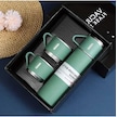 Ebitda Paslanmaz Çelik Vakumlu Termos Seti, 500ml, Çift Duvarlı, Isolate Şişe, İş, Okul, Ofis, Sıcak Ve Soğuk İçecekler Yeşil