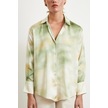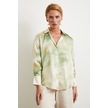 Ebruli Desen Saten Gömlek Yeşil Yeşil