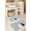 Eco Concept Banyo Paspası, Kaymaz Taban, Çiçek Desenli, Klozet Ta Gri - Beyaz