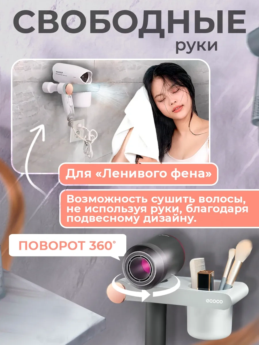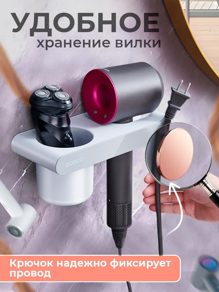 Ecoco Duvara Monte Saç Kurutma Makinesi Askısı, Delme Gerektirmez, Bardaklı 296294978 Gri
