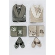 Ecocotton Masal Aile Bornoz Seti M-L Bej-Yeşil Bej - Yeşil