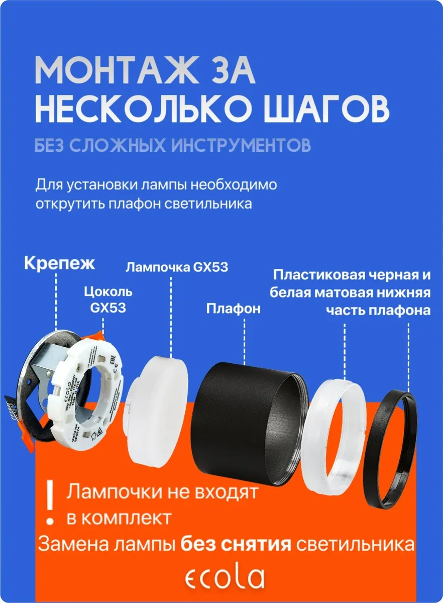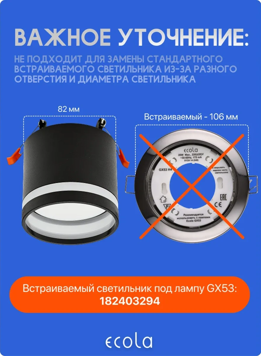 Ecola Gx53 Gömme Nokta Spot Tavan Armatürü 337595929 Siyah