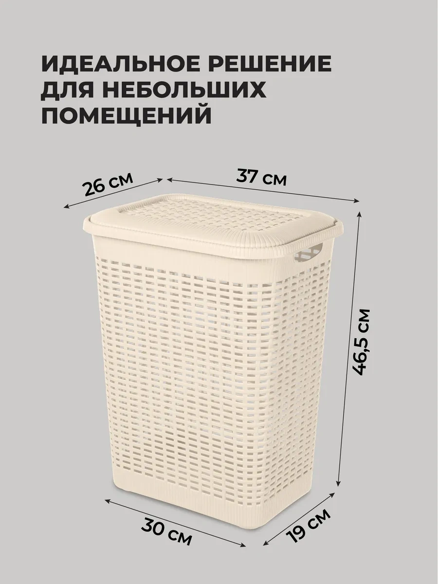 Econova Banyo İçin Plastik Kapaklı Çamaşır Sepeti Depolama 14960334 Bej