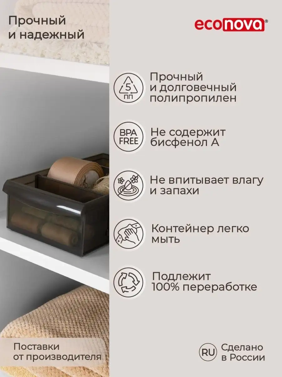 Econova Kozmetik, Kırtasiye, İç Çamaşırı İçin 2,65 Litrelik Saklama Düzenleyici 21007832 Kahverengi