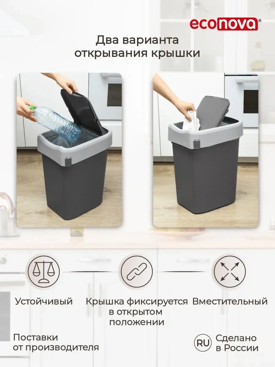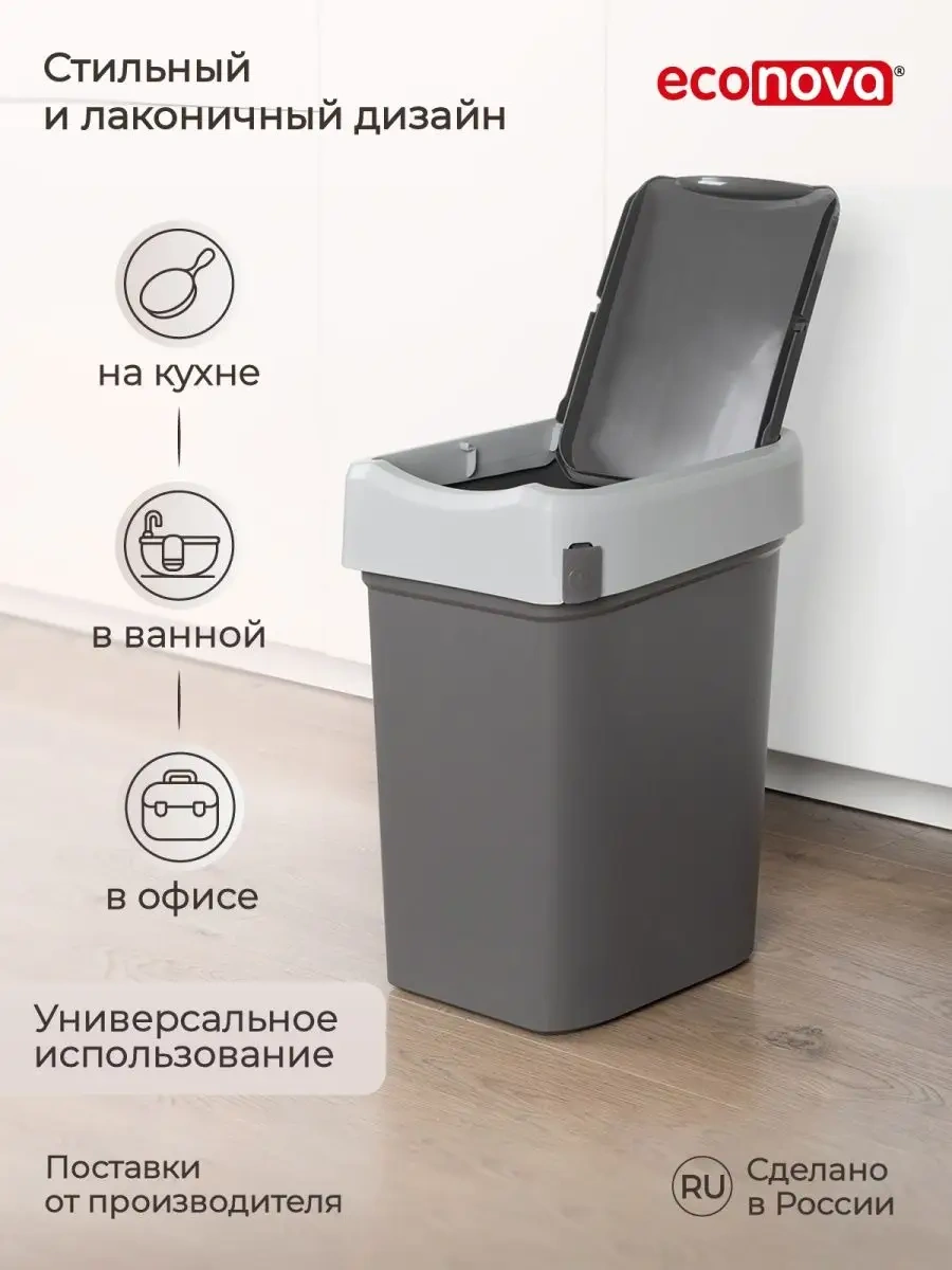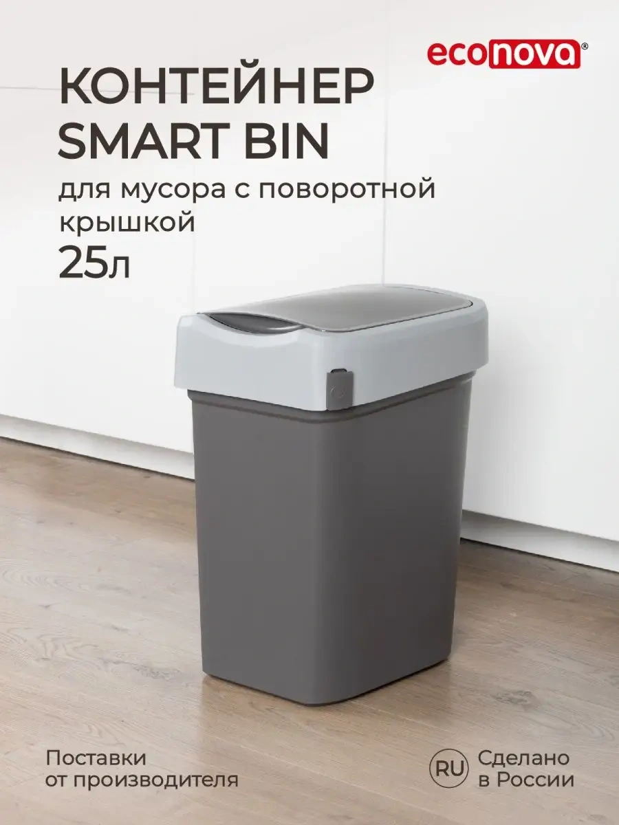 Econova Mutfak İçin Kapaklı 25 Litrelik Çöp Konteyneri 101845148 Koyu Gri