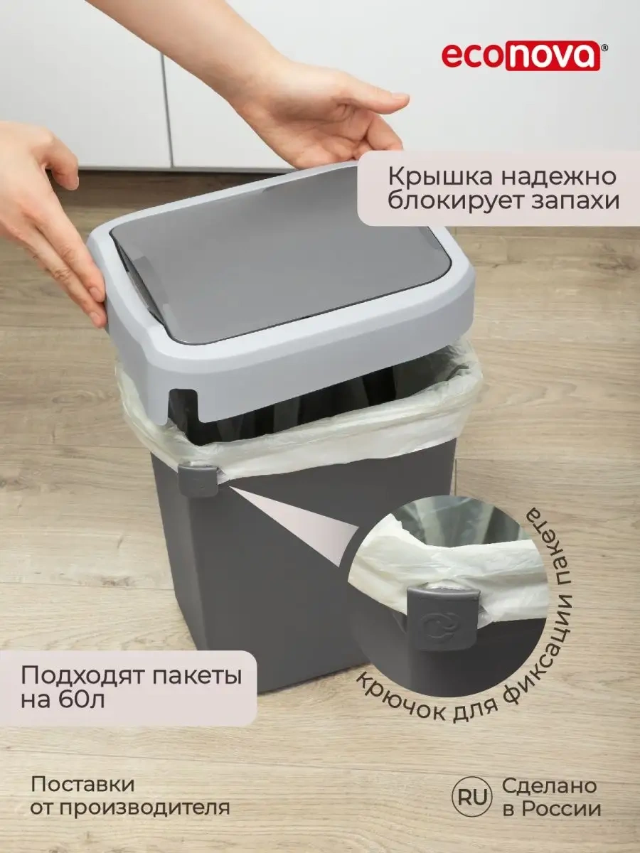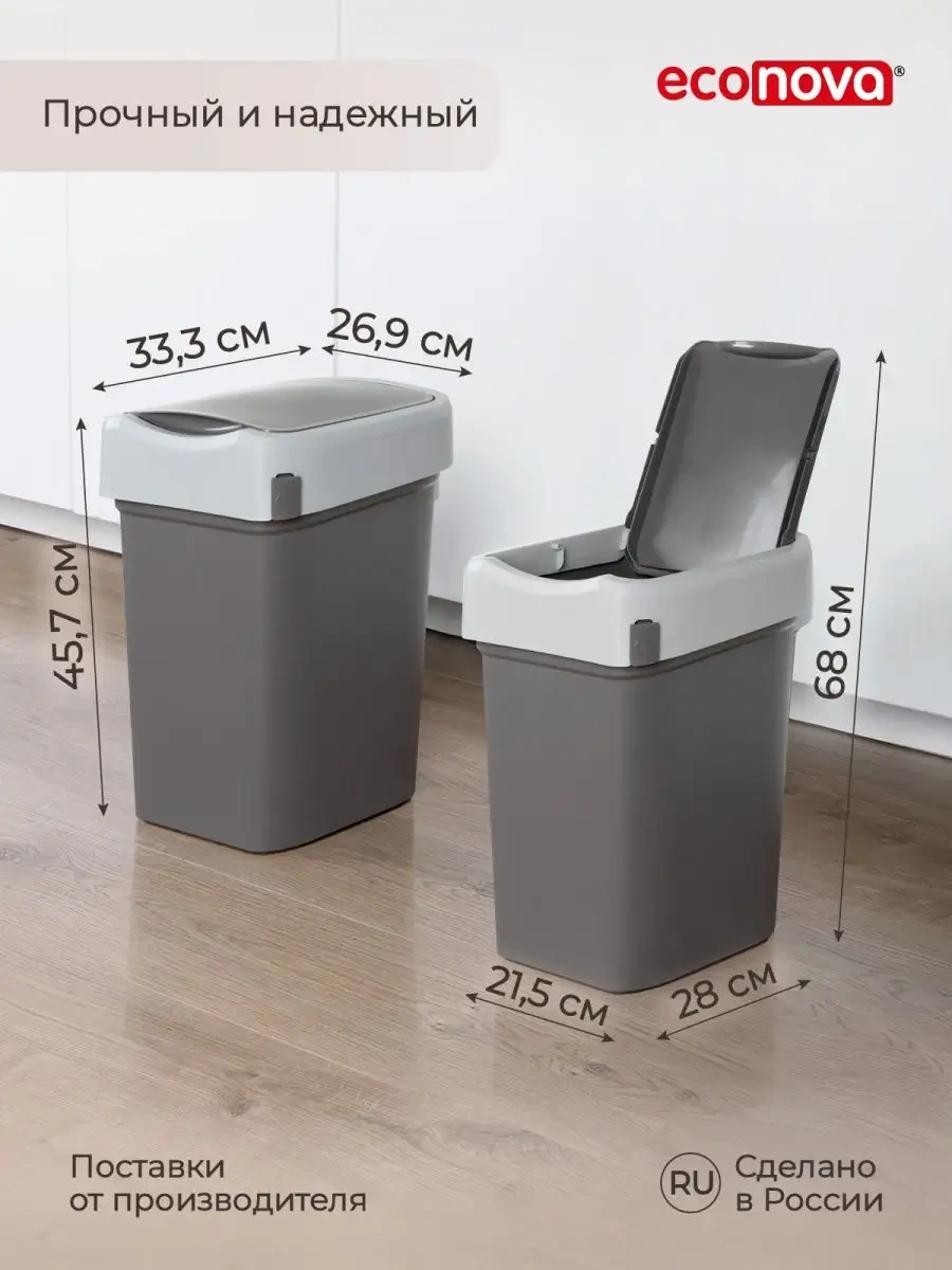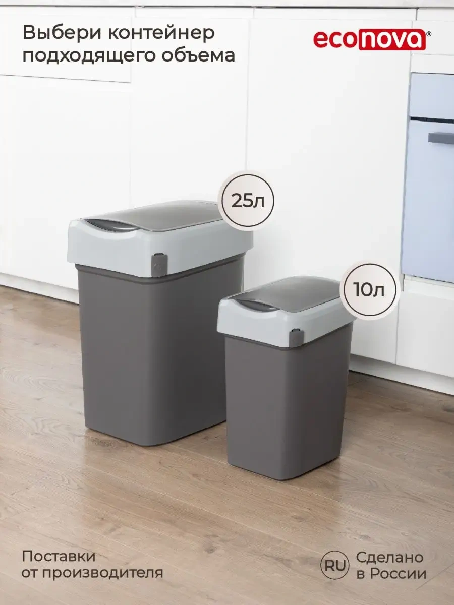 Econova Mutfak İçin Kapaklı 25 Litrelik Çöp Konteyneri 101845148 Koyu Gri