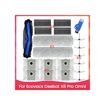 Ecovacs Deebot X8 Pro Omni Robot Süpürge İçin 1 Ana Fırça, 2 Silindir Paspas Pedi, 4 Hepa Filtre, 6 Toz Torbası, 6 Yan Fırça