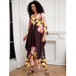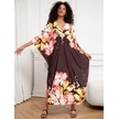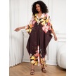 Edolynsa Şık Bohem Kadın Kaftan Kaftan Büyük Beden Ev Elbisesi Yarasa Kol Ev Giyim Mayo Örtüsü Ev Giyim Q1289 Çok Renkli