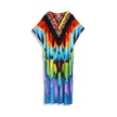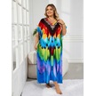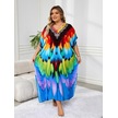 Edolynsa Şık Kadın Kaftan Bohem Renkli Bornoz Rahat Büyük Beden Moo Moo Elbise Taze Elbise Tatil Partisi Uzun Elbise Kıyafet Q1594 Çok Renkli