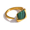 Eetit Paslanmaz Çelik Yeşil Doğal Taş Kadın Açık Yüzük Yeşil