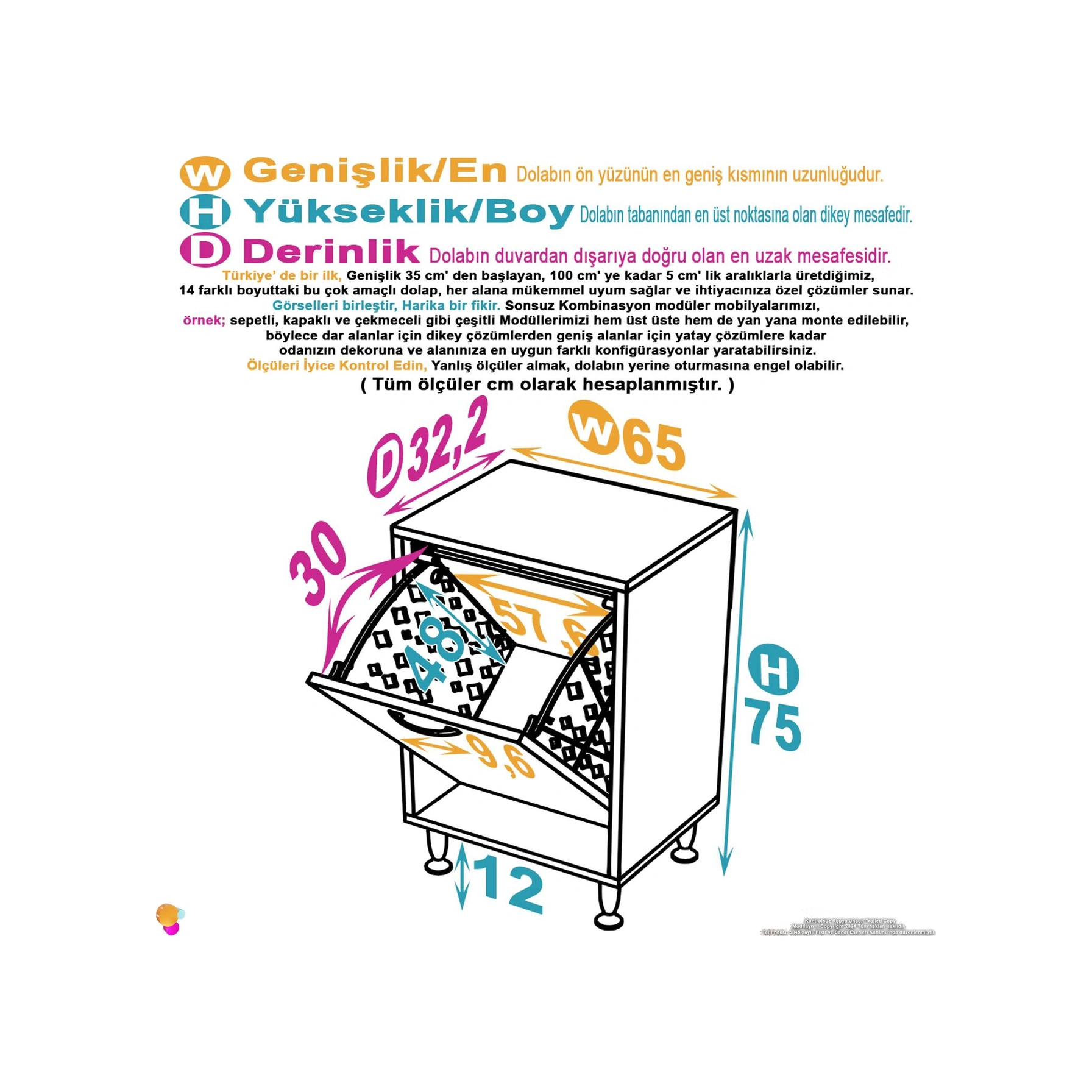 Efil Banyo Dolabı Düzenleyici Dolap Tek Gözlü Sepet Hazneli Mini Banyo Dolabı 65x75x32,5 Cm Beyaz