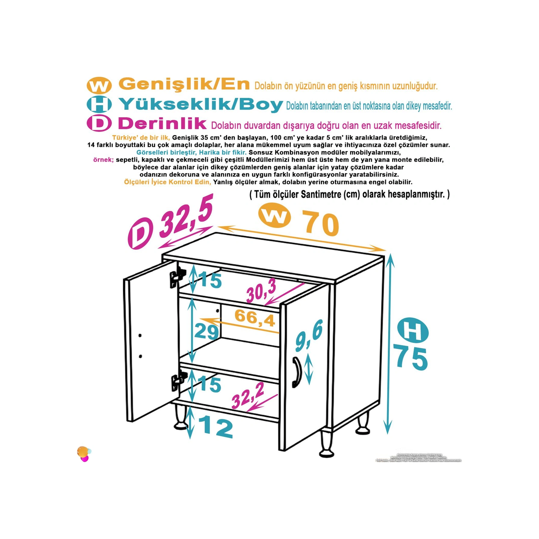 Efil Dolap Dar Alanlar İçin Çok Amaçlı Dolap 2 Kapaklı 3 Göz Raf Dolap 70x75x32,5 Cm Beyaz