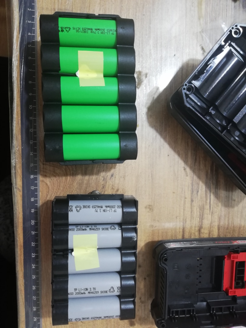 Üstteki yeni batarya, alttaki bende eskiden olan batarya. Yeni batarya da 20650 model 2600mah piller var.(yeşil olan) Markası TP(Tenpower) Eski bataryada da aynı markanın 18650 -2000mah olan pilleri var. (gri olan)