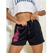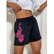 Ejder Kısa Şort Siyah Penye Baskılı Kordonlu Siyah