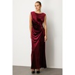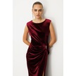 Ekol Kadın Beli Büzgülü Maxi Kadife Elbise 4141 Bordo Bordo