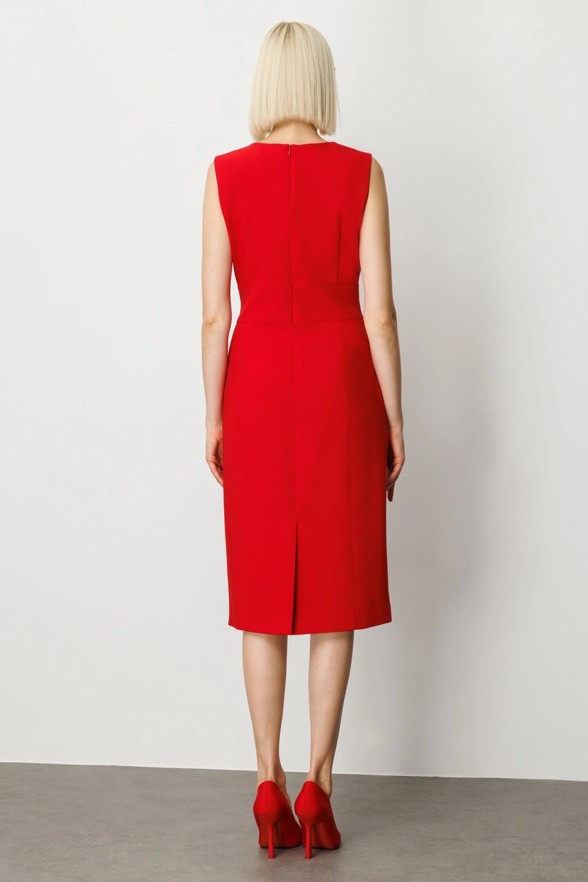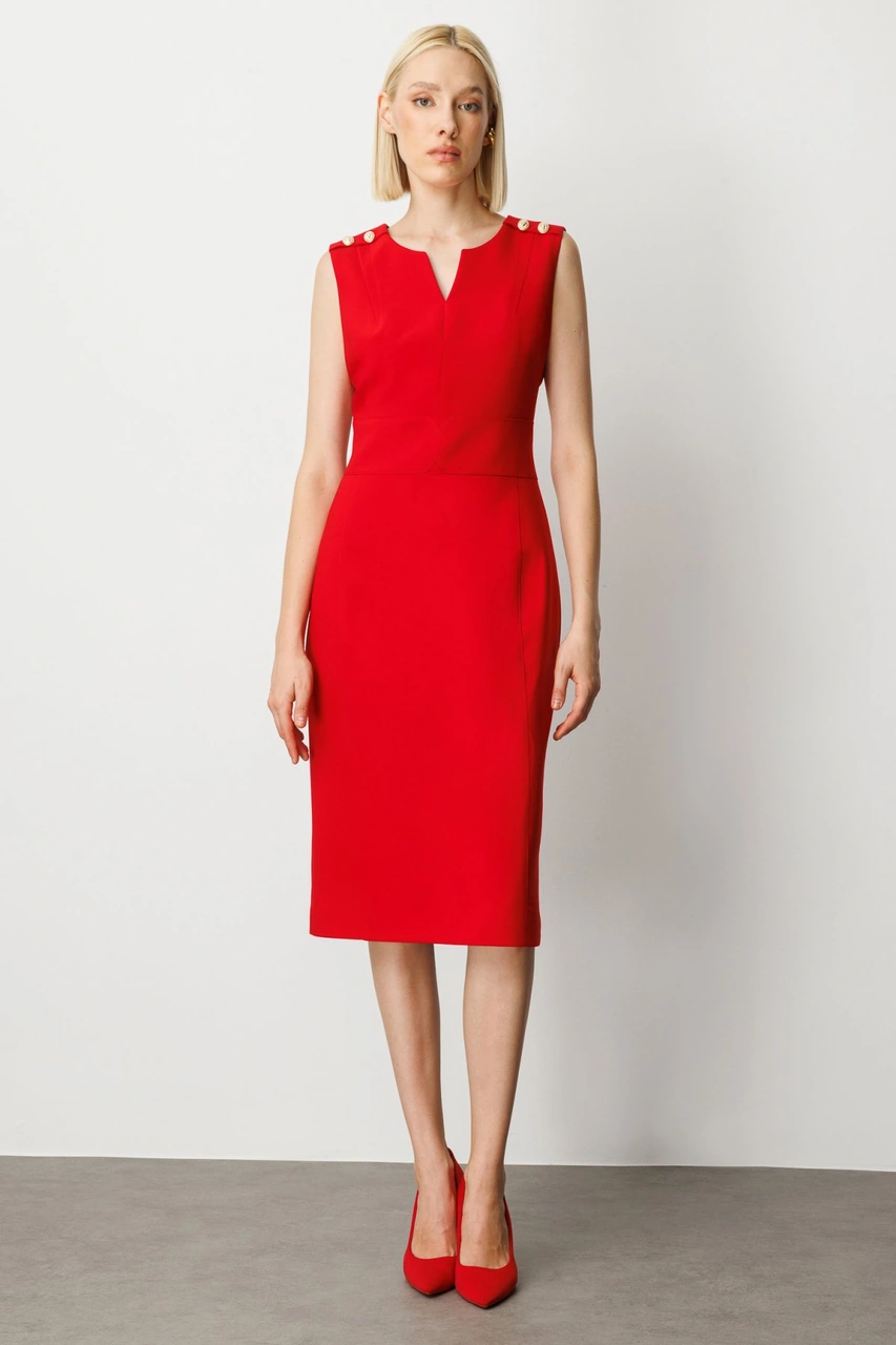 Ekol Kadın Süs Düğme Detaylı Kolsuz Elbise 4015 Kırmızı Kırmızı