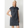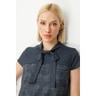 Ekol Kadın Yakası Fiyonk Detaylı Desenli Elbise 4019 Lacivert Lacivert