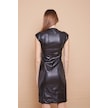 Ekolojik Suni Deri V Yaka Düşük Omuzlu Önü Fermuarlı Elbise -siyah Siyah