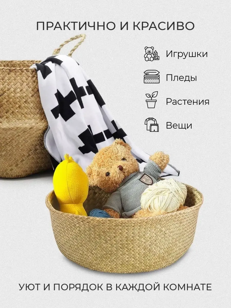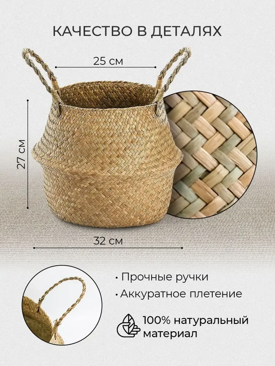 Ekosarm Çiçekler İçin Katlanabilir Saplı Örgü Sepet 313188625 Bej