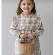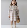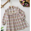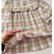 Ekose Çiçek Nakış Detaylı Kız Çocuk Elbise - Yeşil Yeşil