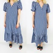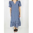 Ekose Desen Volanlı Elbise Mavi
