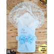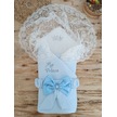 Ekru Erkek Bebek Battaniyesi Dantelli Mevlütlük Hastane Çıkışı Yenidoğan %100 Pamuklu Hediyelik Mavi