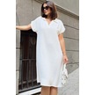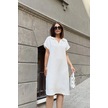 Ekru Kısa Kol, Polo Yaka, Dokulu Kumaş, Basic Kalıp/kesim, Aerobin Rahat Midi Elbise Ekru