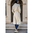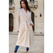 Ekru, Şal Yaka, Cepli, Kuşak Detaylı, Astarsız, Uzun Kaban Ekru