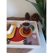 El Boyaması Desenli Ahşap Dikdörtgen Model Çay , Kahve , Söz Nişan Dekoratif Servis Sunum Tepsisi Çok Renkli