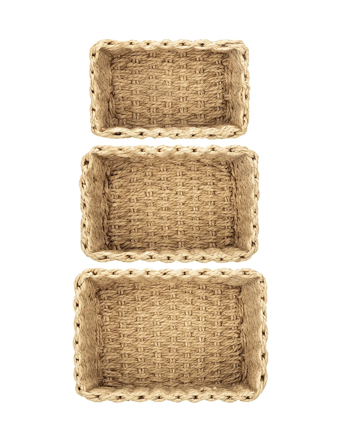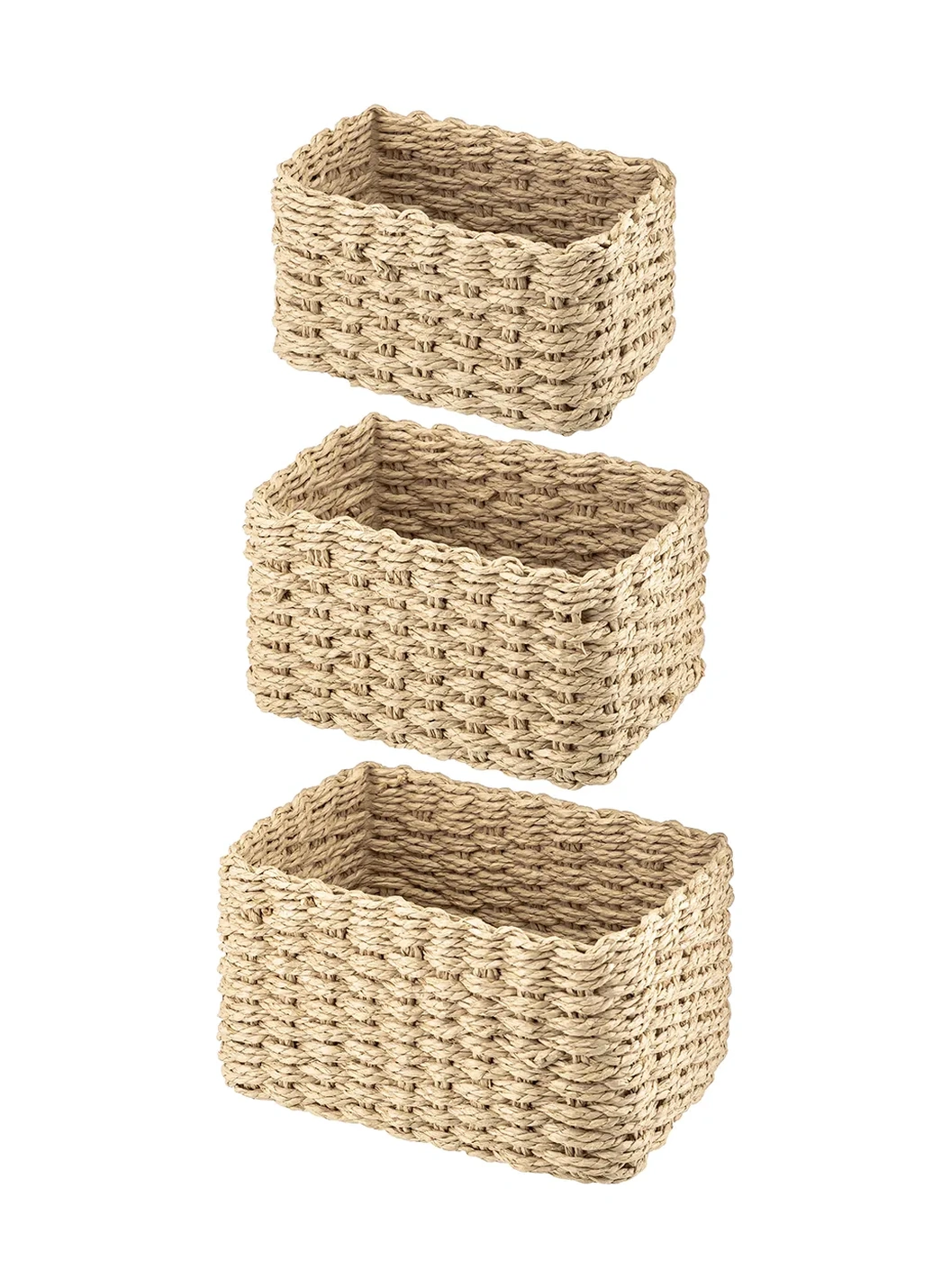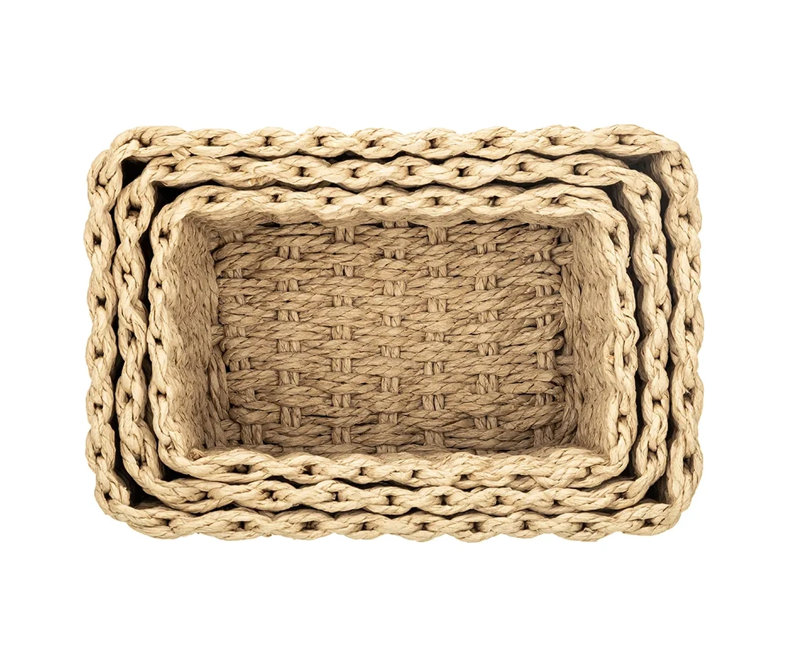 Nergis Hasır 3 Lü Sepet Saklama Kutusu Sepet Takımı Krem
