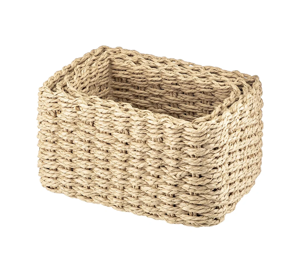 Kapaklı Dokuma Hasır Saklama Kutuları - 4'lü Set - Dikdörtgen Sepet Diğer