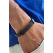 El I Şçiliği İle Üretilmiş Hakiki Deri Erkek Bileklik Kahverengi - Siyah