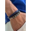 El İşçiliği İle Üretilmiş Hakiki Deri Erkek Bileklik Mavi