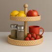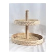 El Yapımı 2 Katlı Doğal Rattan Sunumluk Yuvarlak Servis Tepsisi 25 Cm & 30 Cm Rattan