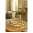 El Yapımı 2 Li Doğal Rattan Sunum Ve Servis Tepsi Seti Bohem Tarz Dekoratif Tepsi 35 Cm & 30 Cm Rattan