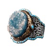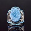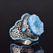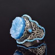 El Yapımı 925 Ayar Gümüş Erkek Yüzük İle Doğal Taş - Kültürel Tasarım Mavi Drusy Kristali Gümüş