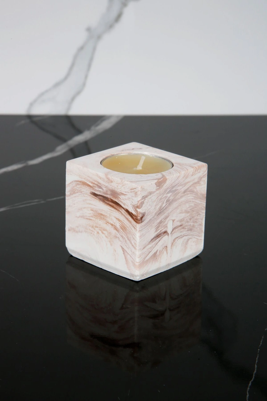 El Yapımı Beton Kare Mumluk Bej Kahverengi